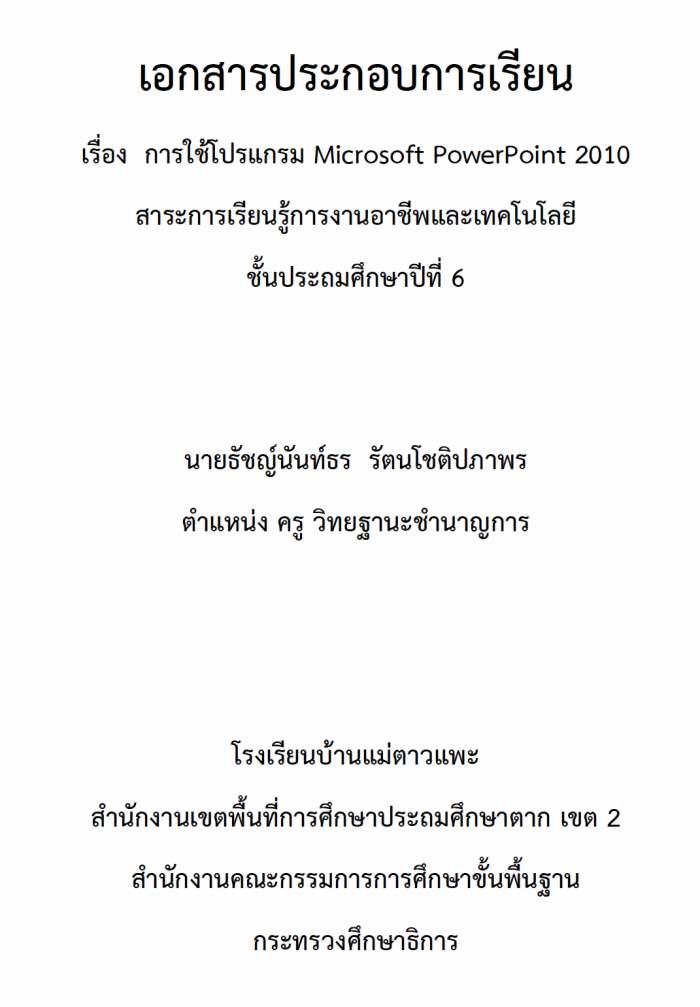 เอกสารประกอบการเรียน การใช้โปรแกรม Microsoft PoWerPoint 2010 ผลงานครูธัชญ์นันท์ธร รัตนโชติปภาพร