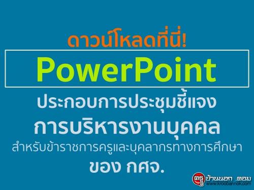 PoWerPoint ประกอบการประชุมชี้แจงการบริหารงานบุคคลสำหรับข้าราชการครูและบุคลากรทางการศึกษา ของ กศจ.