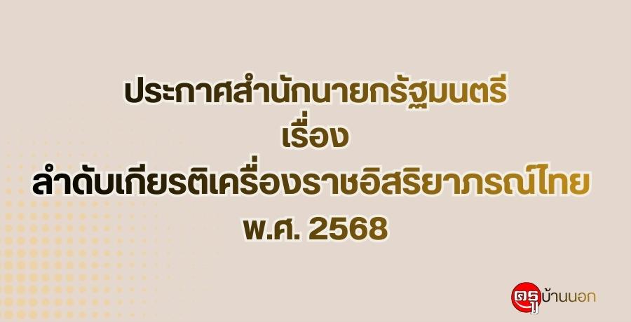 ประกาศสำนักนายกรัฐมนตรี เรื่อง ลำดับเกียรติเครื่องราชอิสริยาภรณ์ไทย พ.ศ. 2568
