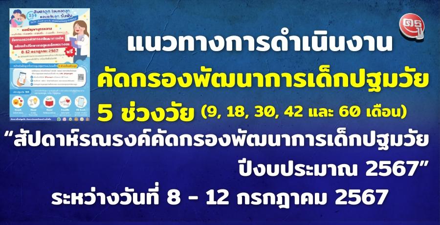 แนวทางการดําเนินงานคัดกรองพัฒนาการเด็กปฐมวัย 5 ช่วงวัย "สัปดาห์รณรงค์คัดกรองพัฒนาการเด็กปฐมวัย ปีงบประมาณ 2567" 8-12 ก.ค.2567