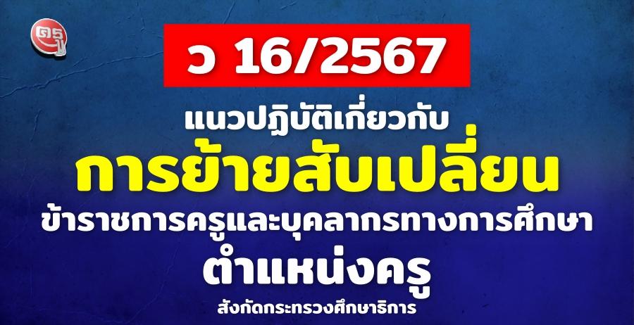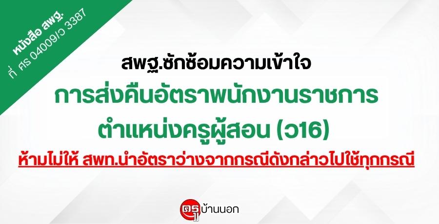 สพฐ.ซักซ้อมความเข้าใจการส่งคืนอัตราพนักงานราชการ ตำแหน่งครูผู้สอน (ว16) ห้ามไม่ให้ สพท.นำอัตราว่างจากกรณีดังกล่าวไปใช้ทุกกรณี