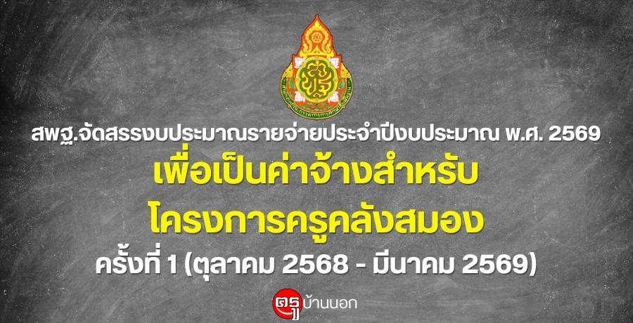 สพฐ.จัดสรรงบประมาณรายจ่ายประจำปีงบประมาณ พ.ศ. 2569 เพื่อเป็นค่าจ้างสำหรับโครงการครูคลังสมอง ครั้งที่ 1 (ตุลาคม 2568 - มีนาคม 2569)