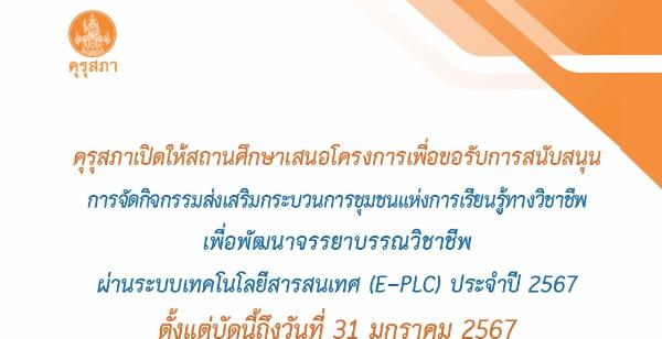 คุรุสภาเปิดรับสมัครโครงการเพื่อขอรับการสนับสนุนการจัดกิจกรรม E-PLC ประจำปี 2567 วันนี้ถึง 31 มกราคม 2567