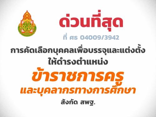 ด่วนที่สุด ที่ ศธ 04009/3942 เรื่อง การคัดเลือกบุคคลเพื่อบรรจุและแต่งตั้งให้ดำรงตำแหน่งข้าราชการครูและบุคลากรทางการศึกษา สังกัด สพฐ.