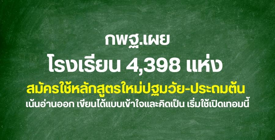 กพฐ.เผยโรงเรียน 4,398 แห่ง สมัครใช้หลักสูตรใหม่ปฐมวัย-ประถมต้น เน้นอ่านออก เขียนได้แบบเข้าใจและคิดเป็น เริ่มใช้เปิดเทอมนี้