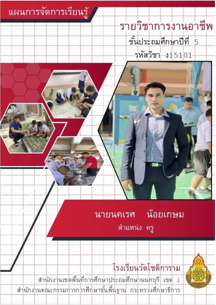 แผนการจัดการเรียนรู้รายวิชาการงานอาชีพ ชั้นประถมศึกษาปีที่ 5 หน่วยการเรียนรู้ที่ 4 เรื่อง พืชผักสวนครัว : นคเรศ น้อยเกษม