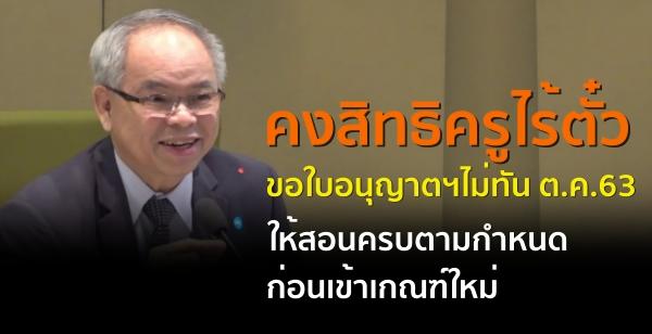 คงสิทธิ ครูไร้ตั๋วขอใบอนุญาตฯไม่ทัน ต.ค.63 ให้สอนครบตามกำหนด ก่อนเข้าเกณฑ์ใหม่