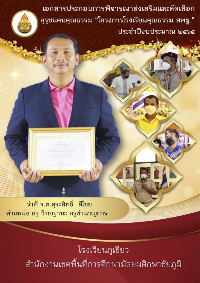 เอกสารประกอบการพิจารณาส่งเสริมและคัดเลือกคุรุชนคนคุณธรรม "โครงการโรงเรียนคุณธรรม สพฐ." ประจำปีงบประมำณ 2565 : สุระสิทธิ์ สีไชย
