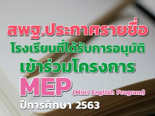 สพฐ.ประกาศรายชื่อโรงเรียนที่ได้รับการอนุมัติเข้าร่วมโครงการ MEP ปีการศึกษา 2563