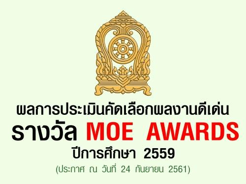 ผลการประเมินคัดเลือกผลงานดีเด่น รางวัล MOE AWARDS ปีการศึกษา 2559