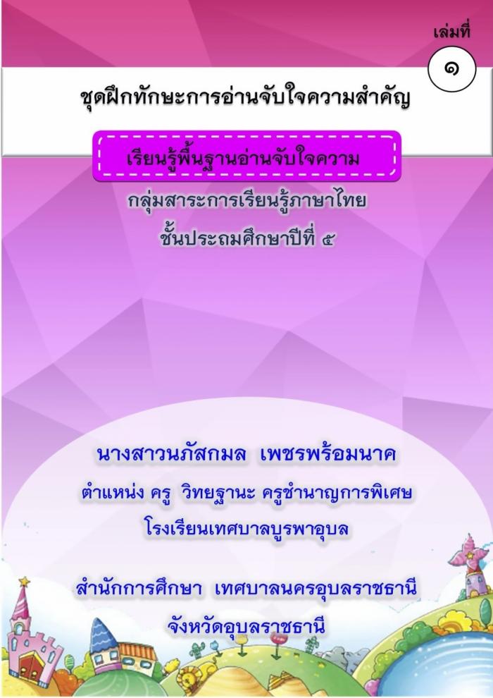 การพัฒนาชุดฝึกทักษะการอ่านจับใจความสำคัญ ตามกระบวนการเรียนรู้แบบ CIRC กลุ่มสาระการเรียนรู้ภาษาไทย ป.5 ผลงานครูนภัสกมล เพชรพร้อมนาค