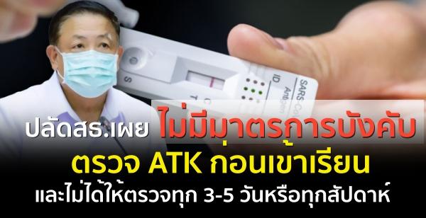 ปลัดสธ.เผยไม่มีมาตรการบังคับตรวจ ATK ก่อนเข้าเรียน และไม่ได้ให้ตรวจทุก 3-5 วันหรือทุกสัปดาห์