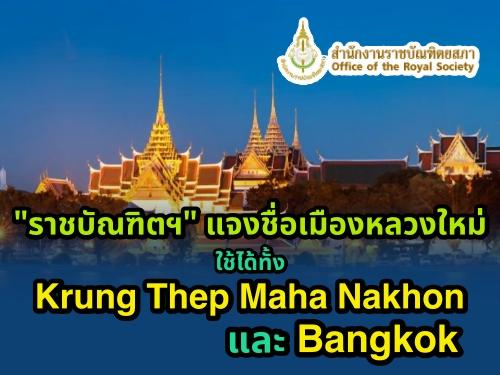 "ราชบัณฑิตฯ" แจงชื่อเมืองหลวงใหม่ ใช้ได้ทั้ง Krung Thep Maha Nakhon และ Bangkok