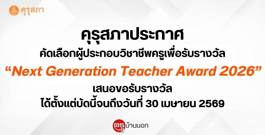 คุรุสภาประกาศคัดเลือกผู้ประกอบวิชาชีพครูเพื่อรับรางวัล Next Generackground-color:yellow;'>ation Teackground-color:yellow;'>acher ackground-color:yellow;'>awackground-color:yellow;'>ard 2026 เสนอขอรับรางวัลได้ตั้งแต่บัดนี้จนถึงวันที่ 30 เมษายน 2569