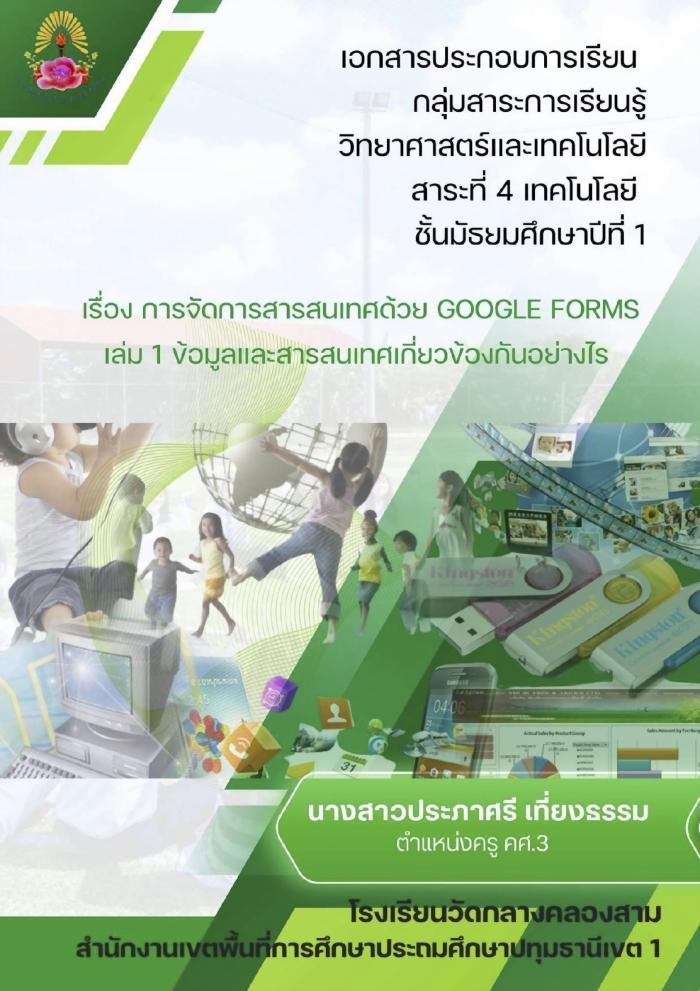 เอกสารประกอบการเรียน กลุ่มสาระการเรียนรู้วิทยาศาสตร์และเทคโนโลยี สาระที่ 4 เทคโนโลยี ชั้นมัธยมศึกษาปีที่ 1 เรื่อง การจัดการสารสนเทศด้วย google forms : ประภาศรี เที่ยงธรรม
