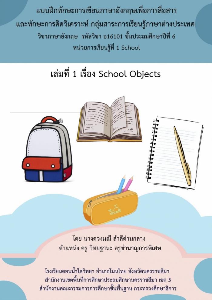 แบบฝึกทักษะการเขียนภาษาอังกฤษเพื่อการสื่อสารและทักษะการคิดวิเคราะห์ หน่วยการเรียนรู้ที่ 1 school เล่มที่ 1 เรื่อง school Objects : ดวงมณี สำลีด่านกลาง