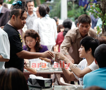 ทั้งที่เป็นงานหมั้นของรุ่นพี่ "เสนาเปิ้ล-นาคร ศิลาชัย" ที่ถือฤกษ์ดี วันที่ 9 เดือน 9 ปี 09 ตีตราจอง ประกอบพิธีหมั้นหมายกับแฟนสาว "น้องจูน-กษมา" แท้ๆ แต่ "เสนาหอย" กลับดี๊ด๊าออกอาการอินเลิฟ จนล้นออกนอกหน้าให้จับได้ ราวกับเป็นงานซ้อมหมั้นของตัวเองกับสาวคนรักยังไงยังงั้น