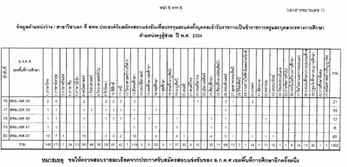 ข้อมูลตำแหน่งว่าง/สาขาวิชาเอก ที่ สพท.ประสงค์รับสมัครสอบแข่งขันเพื่อบรรจุและแต่งตั้งบุคคลเข้ารับราชการเป็นข้าราชการครูและบุคลากรทางการศึกษา ตำแหน่งครูผู้ช่วย ปี พ.ศ.2554 (1 เม.ย. 2554)