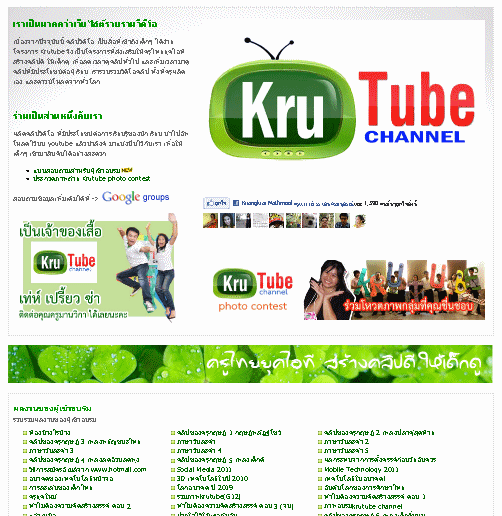 เปิดตัว krutubechannel.com "ครูไทยยุคไอที สร้างคลิปดีให้เด็กดู" เนื่องจากปัจจุบันนี้ คลิปวีดีโอ เป็นสื่อที่เข้าถึงเด็กๆ ได้ง่าย โครงการ Krutube จึงเป็นโครงการที่ส่งเสริมให้ครูไทยยุคไอที สร้างคลิปดี ให้เด็กดู เพื่อลดเวลาดูคลิปทั่วไป และเพิ่มเวลามาดูคลิปที่มีประโยชน์ต่อผู้เรียน เรารวบรวมวีดีโอคลิป ทั้งที่ครูผลิตเอง และดาวน์โหลดจากทั่วโลก ซึ่งในขณะนี้ เวบไซต์ krutube เต็มไปด้วยคลิปวีดีโอที่มีเนื้อหาสาระที่ครูทั่วประเทศพร้อมนำไปใช้ ซึ่งมีทั้ง 8 สาระ ที่จะเป็นประโยชน์แก่ครู และนักเรียนทั่วประเทศได้ศึกษาต่อไป