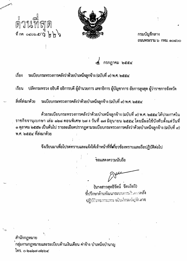 ระเบียบกระทรวงการคลังว่าด้วยบำเหน็จลูกจ้าง (ฉบับที่ 9) พ.ศ. 2554