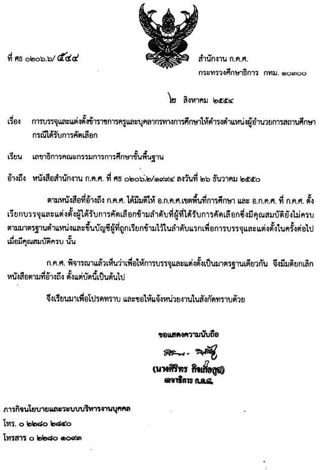 การบรรจุและแต่งตั้งข้าราชการครูและบุคลากรทางการศึกษาให้ดำรงตำแหน่งผู้อำนวยการสถานศึกษากรณีได้รับการคัดเลือก