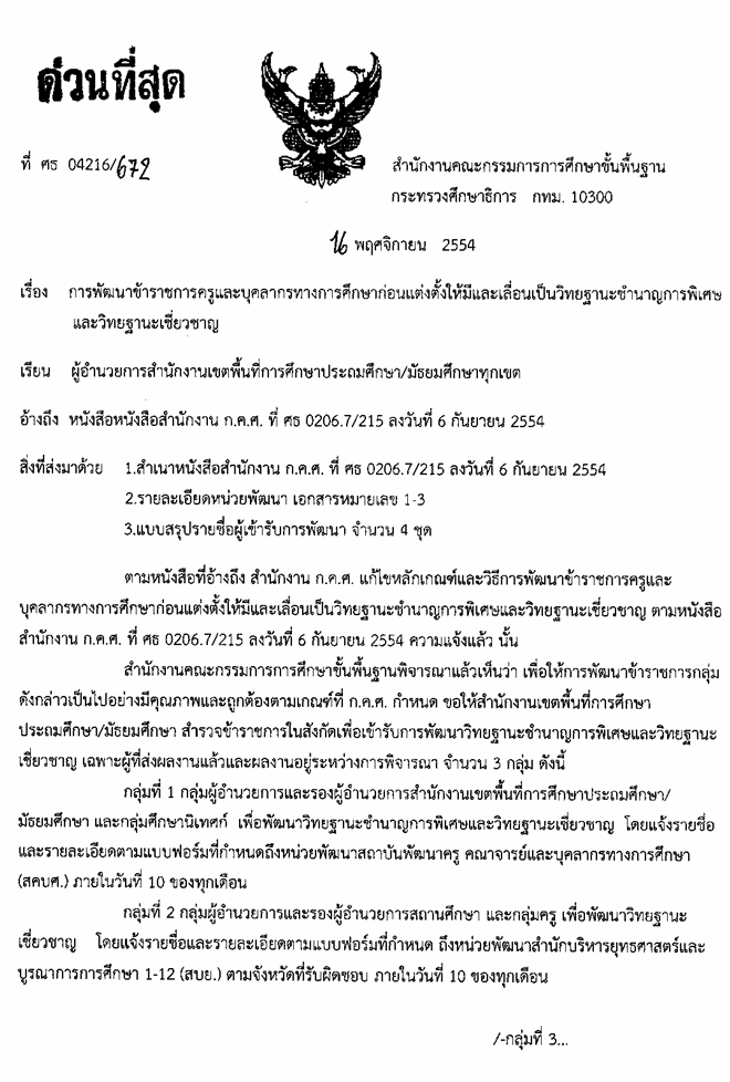 การพัฒนาข้าราชการครูและบุคลากรทางการศึกษาก่อนแต่งตั้งให้มีและเลื่อนเป็นวิทยฐานะชำนาญการพิเศษและวิทยฐานะเชี่ยวชาญ