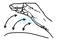 - การเคาะ ใช้อุ้งมือ (ดังรูป) ไม่ควรใช้ฝ่ามือ ควรทำมือให้เป็นลักษณะคุ้ม นิ้วชิดกัน ที่เรียกว่า cupped hand เคาะบริเวณทรวงอกส่วนที่ต้องการระบายเสมหะ