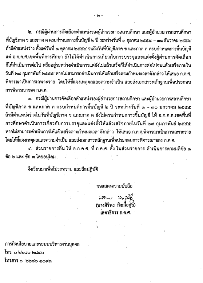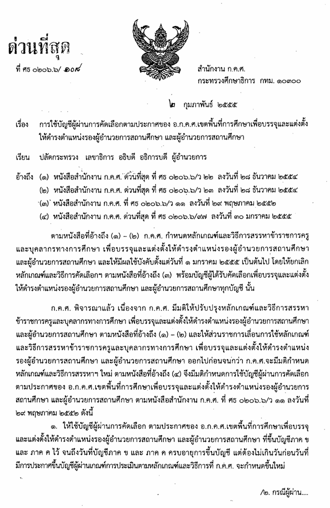 การใช้บัญชีผู้ผ่านการคัดเลือกตามประกาศของ อ.ก.ค.ศ. เขตพื้นที่การศึกษาเพื่อบรรจุและแต่งตั้งให้ดำรงตำแหน่งรองผู้อำนวยการสถานศึกษา และผู้อำนวยการสถานศึกษา
