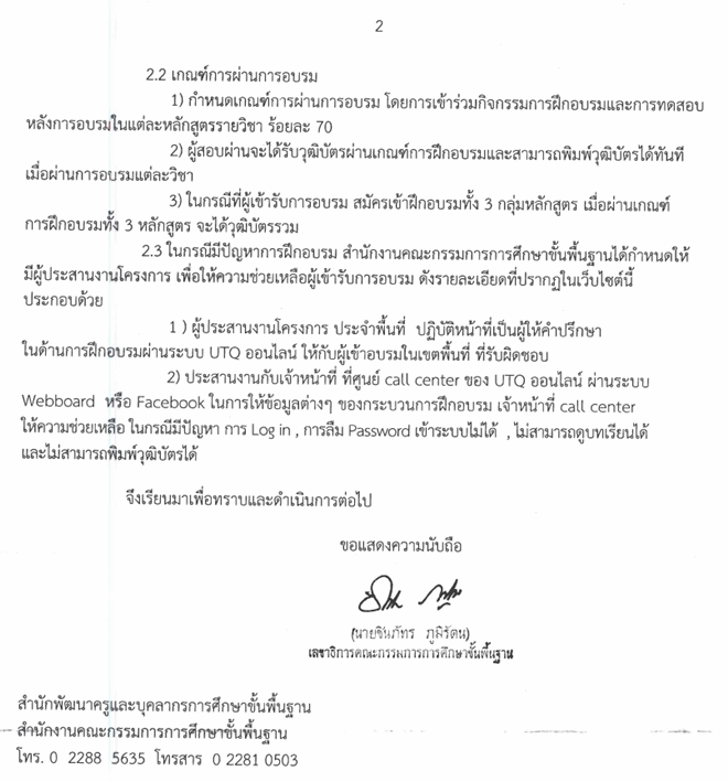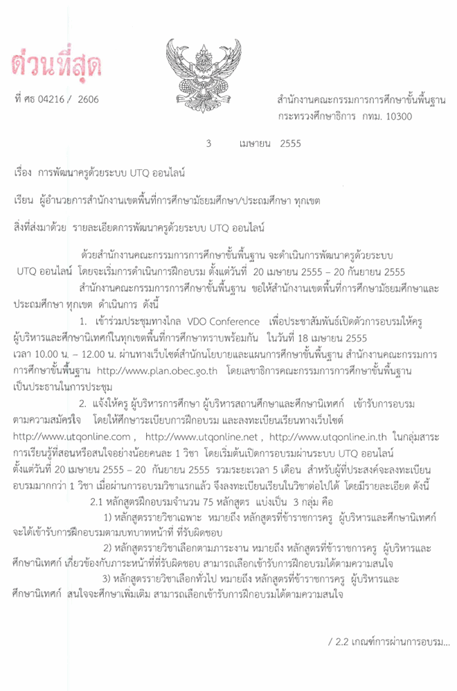 รายละเอียดเพิ่มเติม การพัฒนาครูด้วยระบบ UTQ ออนไลน์ [หนังสือนำ] [สิ่งที่ส่งมาด้วย]