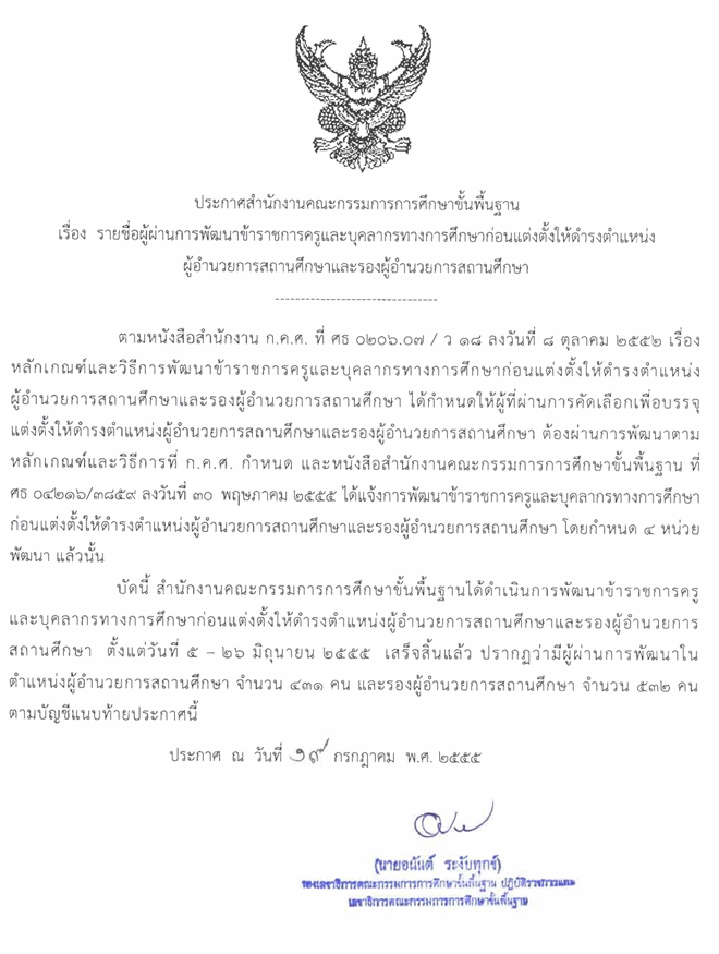 รายงานผลการพัฒนาข้าราชการครูและบุคลากรทางการศึกษาก่อนแต่งตั้งให้ดำรงตำแหน่งผู้อำนวยการสถานศึกษาและรองผู้อำนวยการสถานศึกษา
