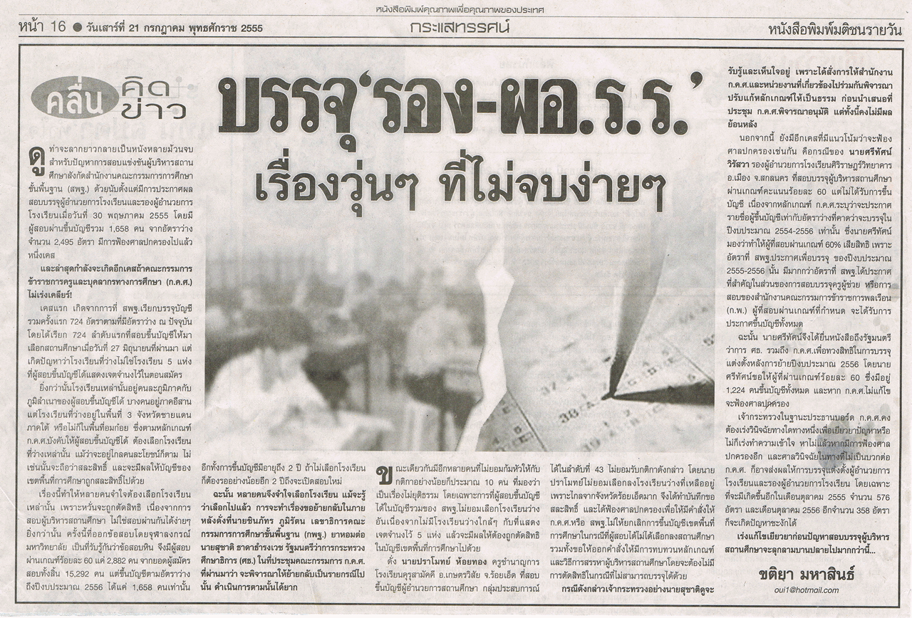 ที่มา คอลัมน์ กระแสทรรศน์ หนังสือพิมพ์มติชนรายวัน วันที่ 21 กรกฎาคม 2555 หน้า 16