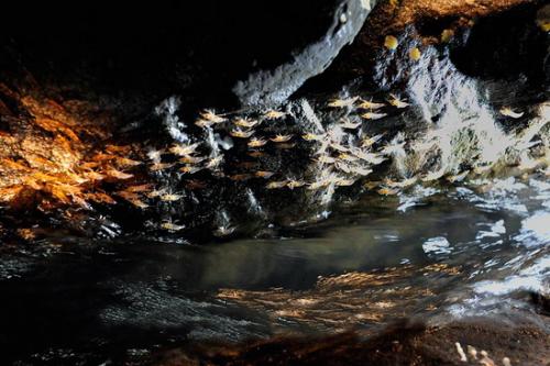 การที่กุ้งเหล่านี้มาเดินบนพลาญหิน ลานพันรู มีสาเหตุมาจากการที่จะเดินทางมายังแหล่งต้นน้ำ ที่เป็นบ้านเกิด บนยอดเขาพนมดงรัก มันต้องฝ่าฟันอุปสรรคต่างๆมากมาย นี่ก็เป็นบนพิสูจน์อีกอย่างหนึ่งคือ การเดินทางผ่านน้ำตกแก่งลำดวน ซึ่งมีกระแสน้ำไหลเชี่ยว จำเป็นต้องหลบความรุนแรงของกระแสน้ำ โดยการขึ้นมาเดินบนโขดหิน จนกลายเป็นเหตุการณ์ที่เห็นแล้วทึ่งดังกล่าว