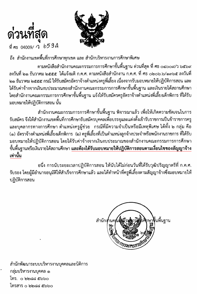 ซักซ้อม การรับสมัครคัดเลือกบุคคลเพื่อบรรจุและแต่งตั้งเข้ารับราชการเป็นข้าราชการครูและบุคลากรทางการศึกษา ตำแหน่งครูผู้ช่วย กรณีที่มีความจำเป็นหรือมีเหตุพิเศษ