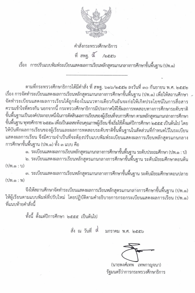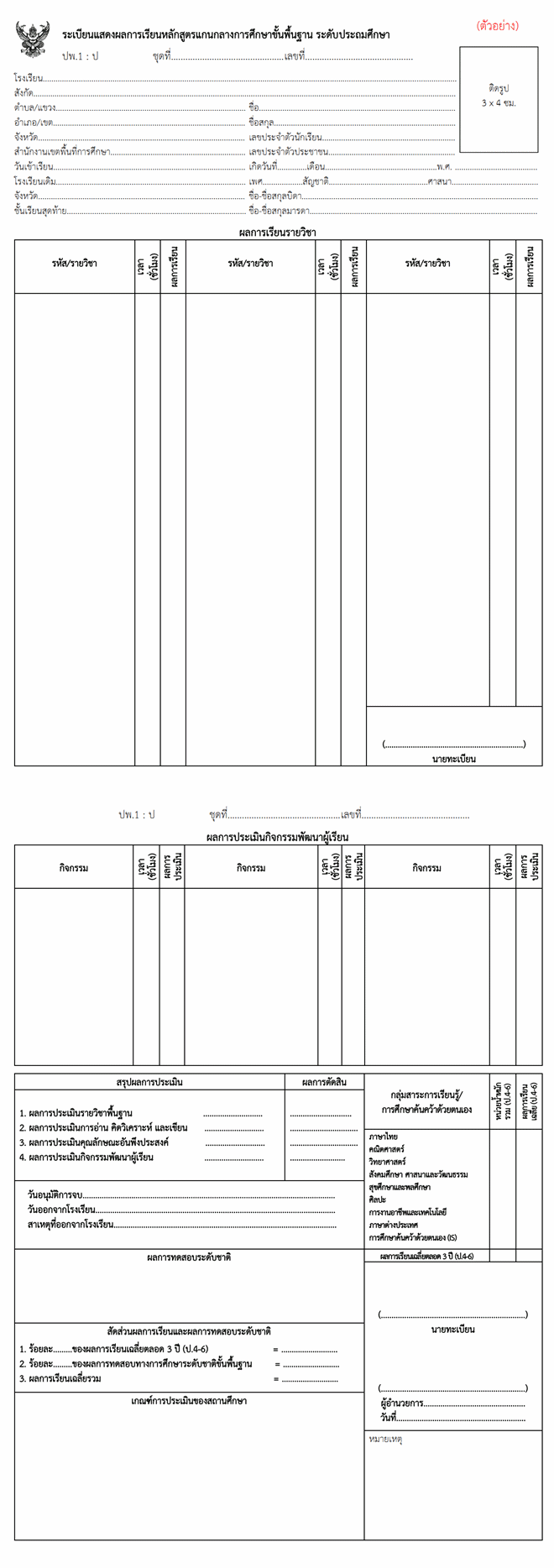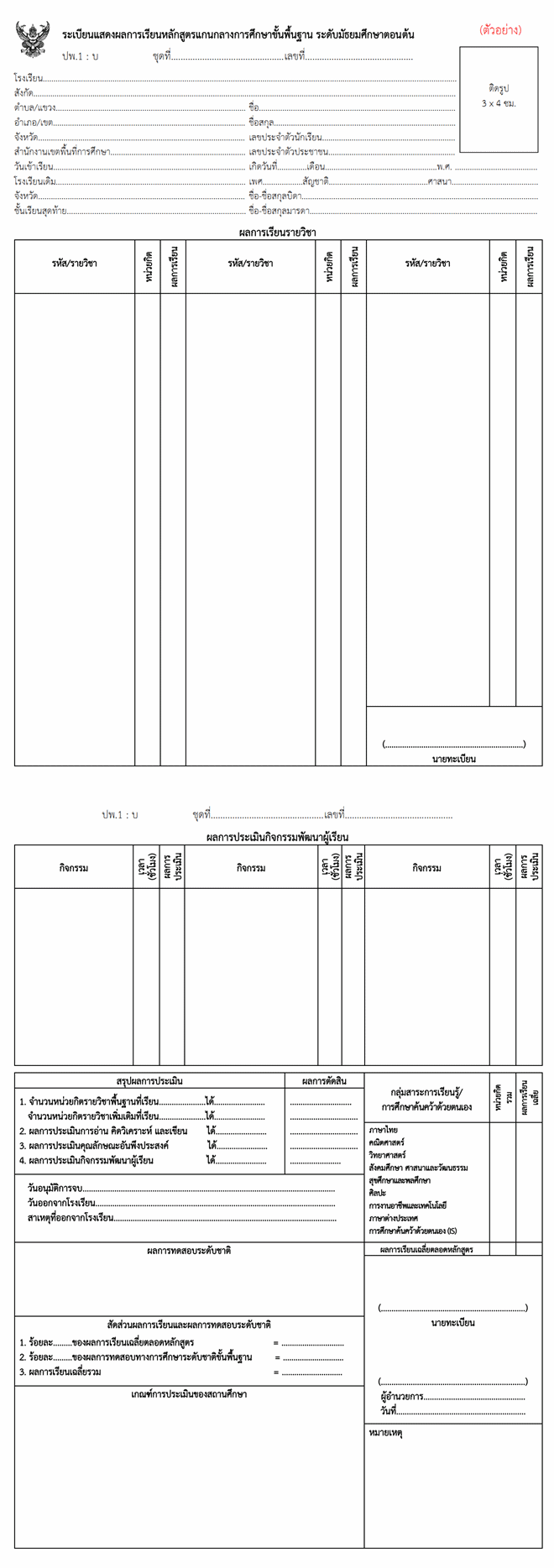 การปรับแบบพิมพ์ระเบียนแสดงผลการเรียนหลักสูตรแกนกลางการศึกษาขั้นพื้นฐาน (ปพ.๑)