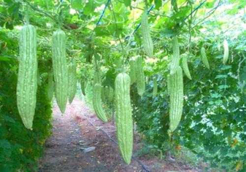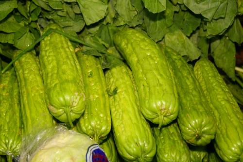 มะระจีนผลจะยาวใหญ่สีขาวอมเขียว ผิวขรุขระ ร่องใหญ่ ผลยาวประมาณ 4-9 นิ้ว บางครั้งที่พื้นที่เพาะปลูกมีความอุดมสมบูรณ์ผลอาจยาวถึง 10-12 นิ้ว ส่วนที่ใช้ประโยชน์เพื่อการบริโภคมี ยอดอ่อน ผลอ่อน ใบ ราก และเถา ซึ่งส่วนเหล่านี้จะมีส่วนประกอบของ คาร์โบไฮเดรต เส้นใย โปรตีน แคลเซียม ฟอสฟอรัส เหล็ก วิตามินเอ บี 1 บี 2 ซี มีสารรสขม และสารลดระดับน้ำตาลในเลือด ได้แก่ พี-อินซูลิน