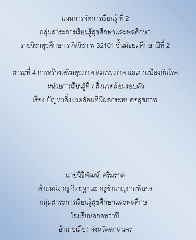 ดาวน์โหลดแผนการจัดการเรียนรู้ สุขศึกษา ม.2