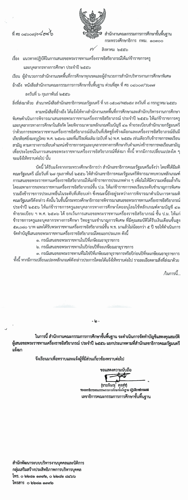 ที่ ศธ04009/ว4086 แนวทางปฏิบัติในการเสนอขอพระราชทานเครื่องราชอิสริยาภรณ์ให้แก่ข้าราชการครูและบุคลากรทางการศึกษา ประจำปี 2556