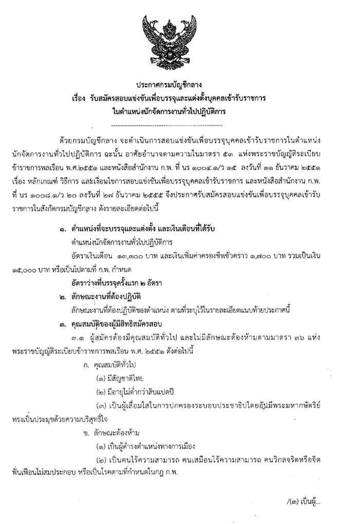 กรมบัญชีกลาง รับสมัครบุคคลเพื่อสอบคัดเลือกเข้ารับราชการ ตำแหน่ง นักจัดการงานทั่วไปปฏิบัติการ ตั้งแต่วันที่ 9-27 กันยายน พ.ศ. 2556