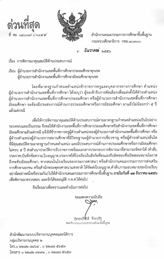 ด่วนที่สุด ที่ ศธ 04009/ว6089 การพิจารณาคุณสมบัติด้านประสบการณ์