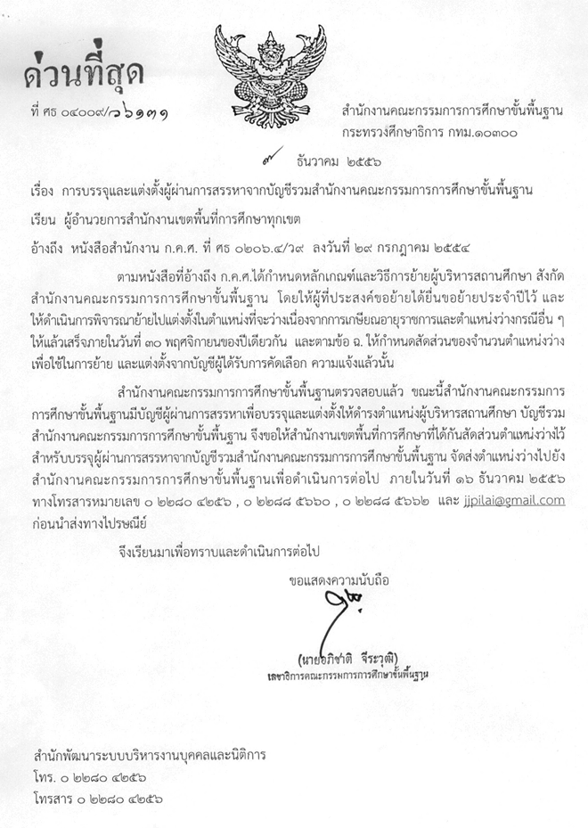 ด่วนที่สุด ที่ ศธ 04009/ว6131 การบรรจุและแต่งตั้งผู้ผ่านการสรรหาจากบัญชีรวม สพฐ.