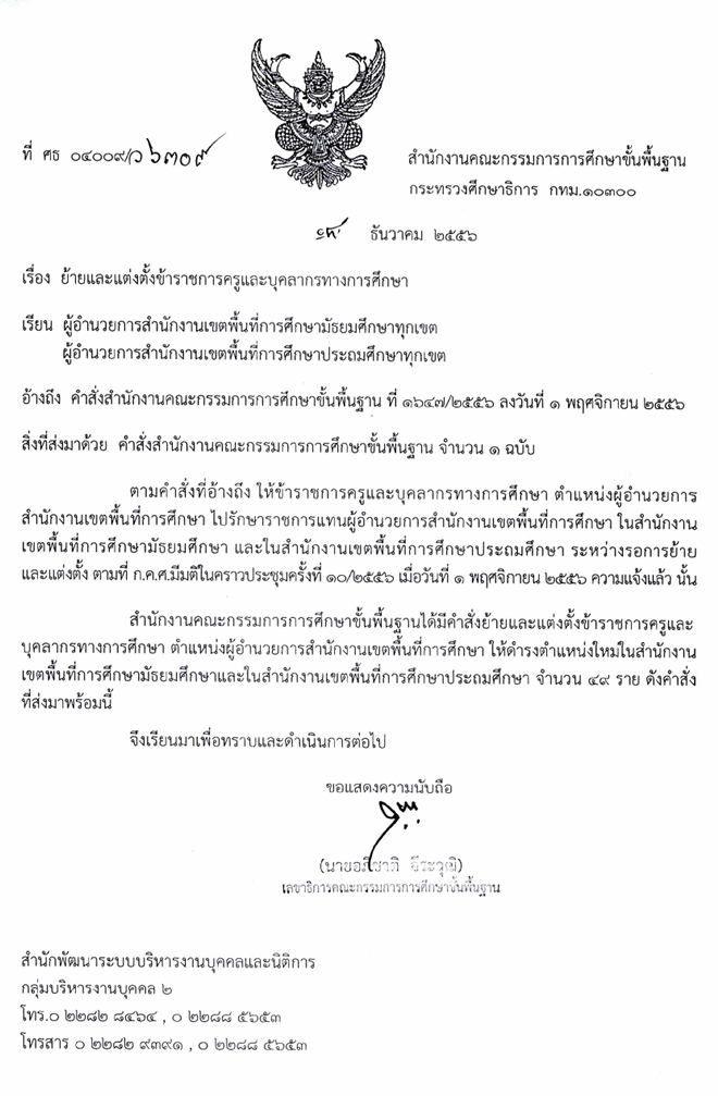 ที่ศธ 04009/ว6309 เรื่อง ย้ายและแต่งตั้งข้าราชการครูและบุคลากรทางการศึกษา (ผอ.สพท.จำนวน 49 ราย)