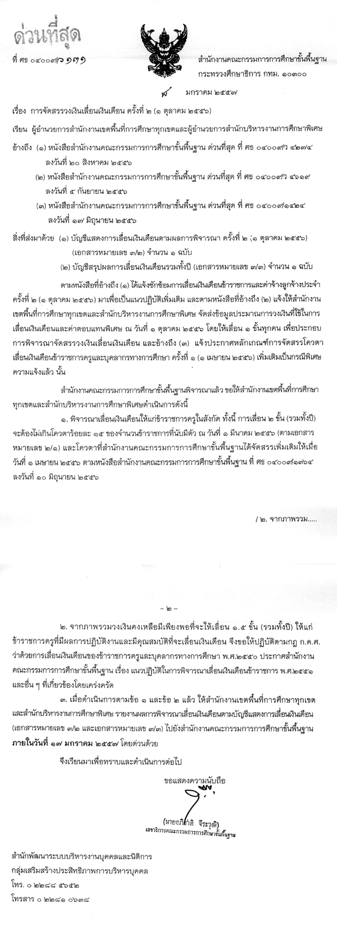 ด่วนที่สุด ที่ ศธ 04009/ว131 การจัดสรรวงเงินเลื่อนเงินเดือน ครั้งที่ 2(1 ตุลาคม 2556)