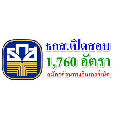 ธนาคารเพื่อการเกษตรและสหกรณ์การเกษตรมีความประสงค์จะรับสมัครสอบบุคคลภายนอก เพื่อปฏิบัติงานพัฒนาธุรกิจ และการเงิน ประจำสาขา และสำนักงาน ธ.ก.ส.จังหวัดของธนาคาร จำนวนรวม 1760 อัตรา รับสมัครผ่านอินเทอร์เน็ต ตั้งแต่วันที่ 13 - 19 มกราคม 2557