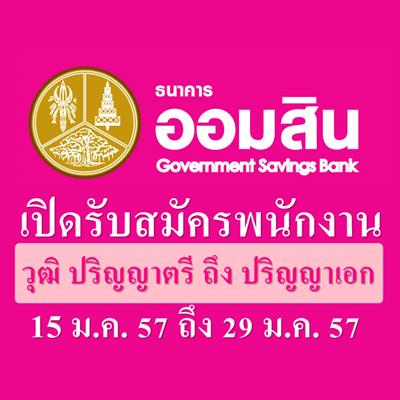 ธนาคารออมสิน รับสมัครพนักงานระดับ 4-5 ระดับการศึกษาตั้งแต่ ปริญญาตรี ถึง ปริญญาเอก ตั้งแต่วันที่ 15 ม.ค. 57 ถึง 29 ม.ค. 57
