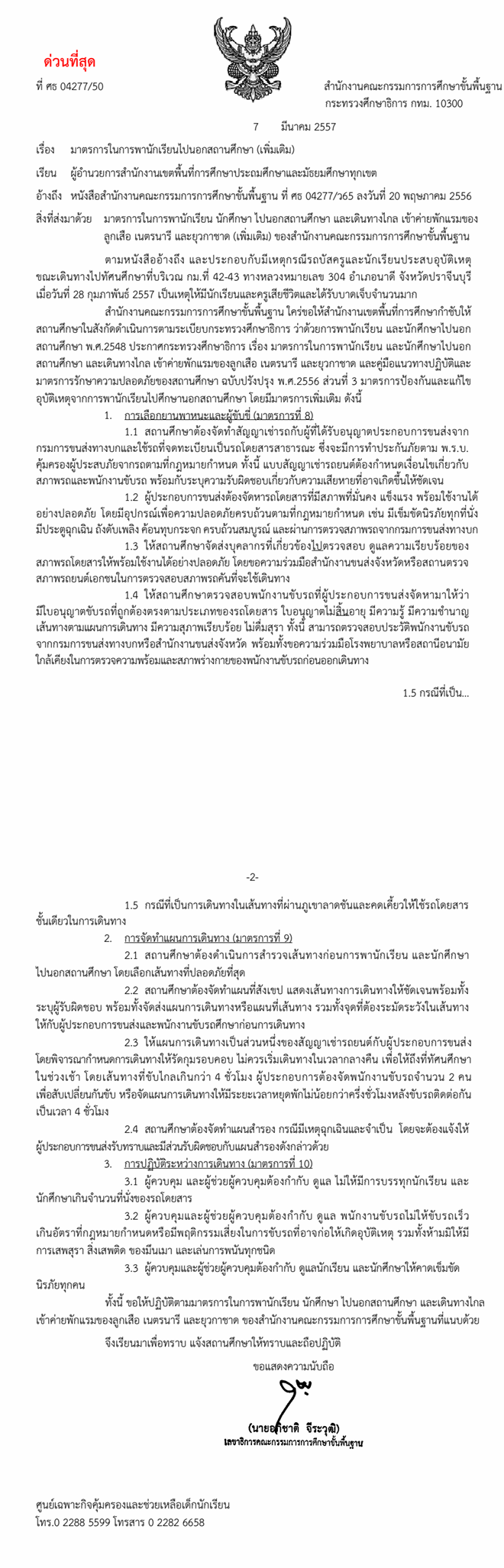 มาตรการในการพานักเรียนไปนอกสถานศึกษา(เพิ่มเติม)