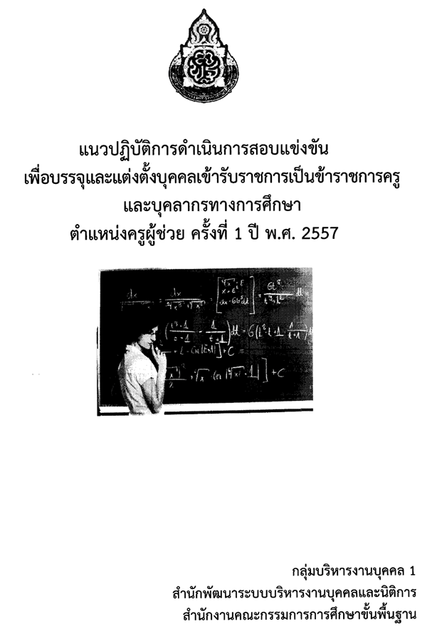แนวปฏิบัติการดำเนินการสอบแข่งขันเพื่อบรรจุและแต่งตั้งบุคคลเข้ารับเป็นข้าราชการครูและบุคลากรทางการศึกษา ตำแหน่งครูผู้ช่วย ครั้งที่ 1 ปี พ.ศ.2557