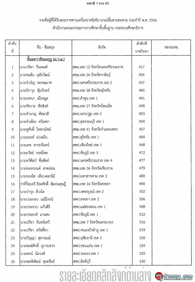 รายชื่อผู้ได้รับพระราชทานเครื่องราชอิสริยาภรณ์ชั้นสายสะพายประจำปี พ.ศ.2556 สพฐ.กระทรวงศึกษาธิการ