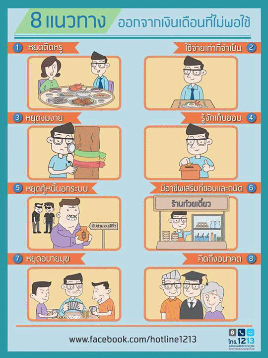 "อารมณ์" ที่ว่าคือ "ความต้องการ ความพึงพอใจ ความอยากได้อยากมี" โดยไร้สติ จนเหนือ "เหตุผล" ในการไตร่ตรอง วางแผน ข้อดีข้อเสีย ทำให้ "เงินเดือนไม่พอใช้" และเมื่อเงินไม่พอใช้ก็กลายเป็นว่า ไม่มีเก็บออม แถมล่วงเลยอาจต้องกู้หนี้ยืมสิ้นจนกลายเป็นการบ่มเพาะการวางแผนทางการเงินที่ล้มเหลวได้ง่าย ๆ กระปุกดอทคอม จึงมียุทธวิธี "ออกจากเงินเดือนที่ไม่พอใช้" จาก เฟซบุ๊ก ศูนย์คุ้มครองผู้ใช้บริการทางการเงิน (ศคง.) มาแนะนำกันครับ