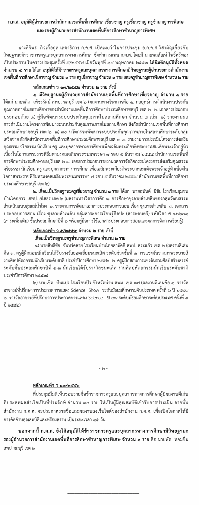 ก.ค.ศ. อนุมัติผู้อำนวยการสำนักงานเขตพื้นที่การศึกษาเชี่ยวชาญ ครูเชี่ยวชาญ ครูชำนาญการพิเศษและรองผู้อำนวยการสำนักงานเขตพื้นที่การศึกษาชำนาญการพิเศษ