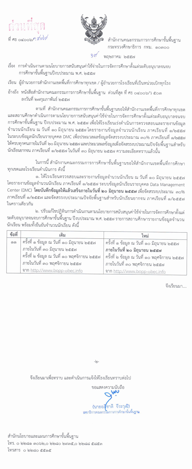 การดำเนินงานตามนโยบายสนับสนุนค่าใช้จ่ายในการจัดการศึกษาตั้งแต่ะดับอนุบาลจนจบการศึกษาขั้นพื้นฐาน ปีงประมาณ พ.ศ. 2557